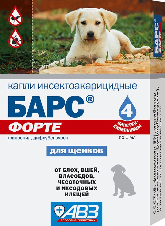 Читать все статьиБарс форте капли (4пип.) инсектоакарицидные для щенков