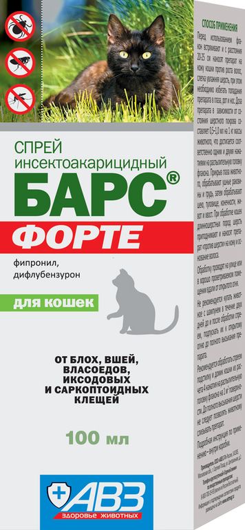 Читать все статьиБарс спрей ФОРТЕ (100мл.) 18шт/1 для кошек