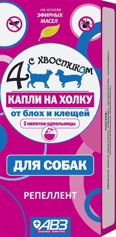 Читать все статьиЧетыре с хвостиком капли антипаразитарные с репеллентым эффектом для собак