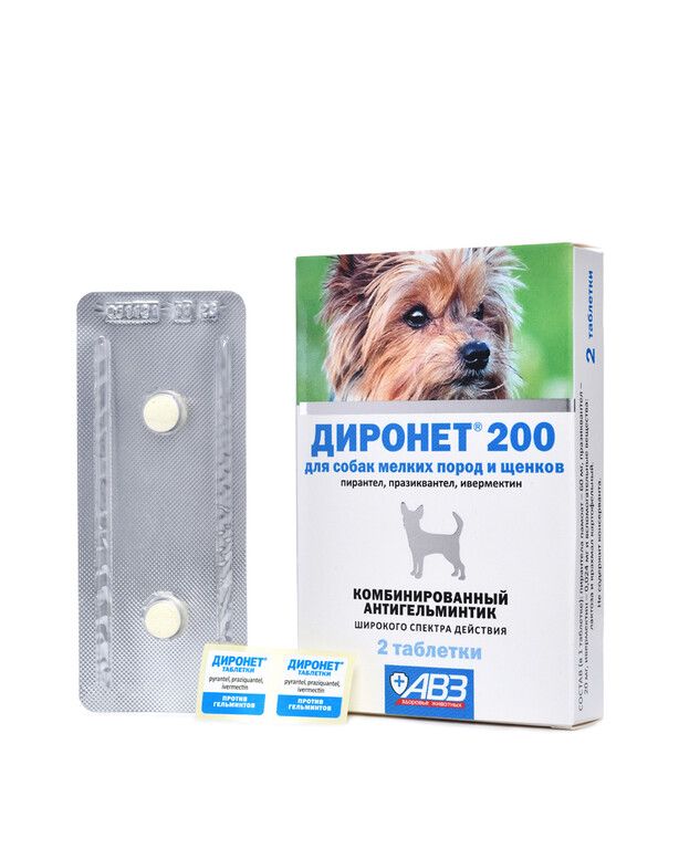 Читать все статьиДиронет 200 (2таб.) для собак мелких пород 1таб.*4кг.