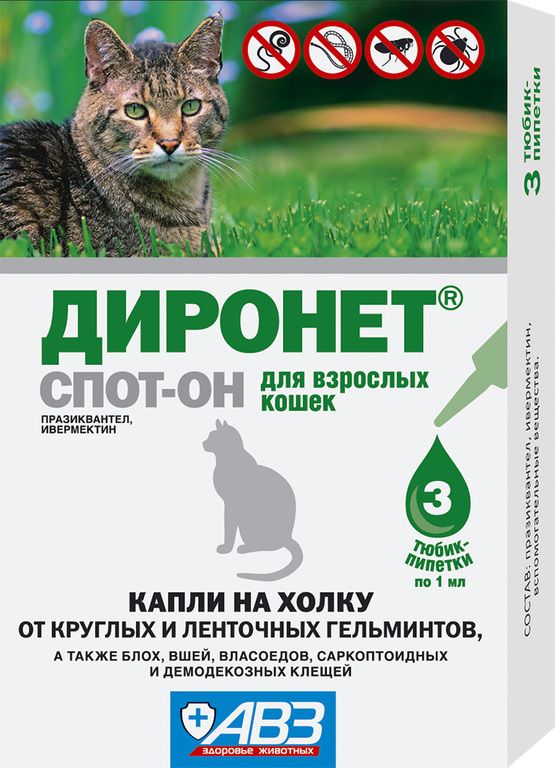 Читать все статьиДиронет спот-он (3пип.) для кошек